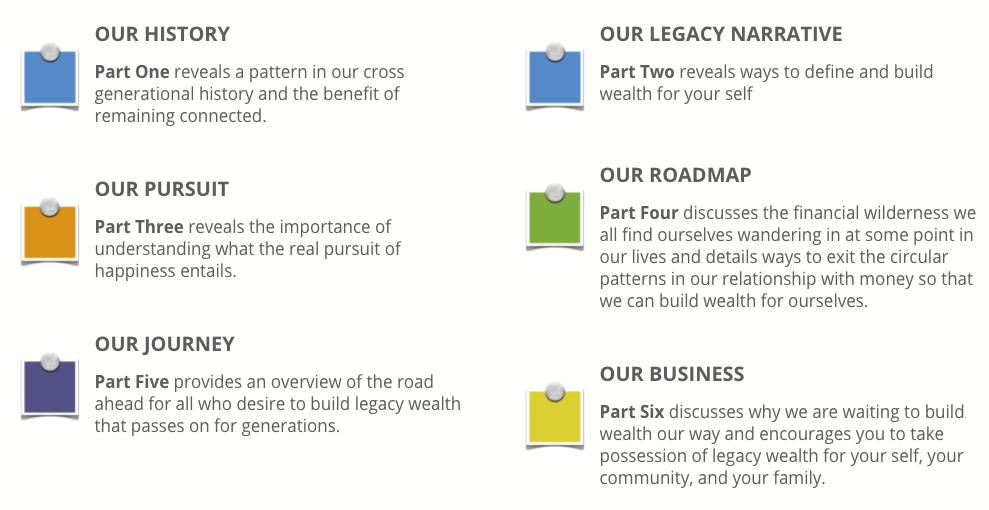 This book was written based on a meta-pattern. A meta Pattern is a pattern of patterns. After interviewing thousands of people about their faith, their finances, beliefs about wealth, and understanding of business a pattern emerged. I placed the patterns into frameworks so that more of us can understand how wealth is and can be created. These are not opinions or ideas made up on a whim. The information in this book is based on years of research and experience with people committed to taking possession of a promise that has been talked about for generations — wealth our way.